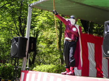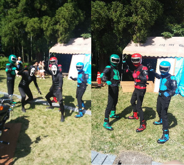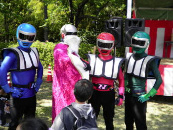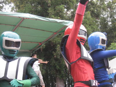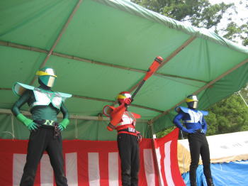 その中で「地方ヒーローみたいなのがあるらしいけど俺達でもできんかなー?っと話の発端はたわいも無い話から始まりました、そのときは「そんなもんできんでしょー」ということで話は終わったのですが昨年のつつじ祭りでの話し合いの中でまたこの話が再燃して、何とかやってみようということになりナオエンジャーが誕生しましたww